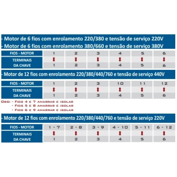 Na escolha da chave ET, deve-se considerar que no momento da partida (Y) em estrela, a corrente e o momento de partida ficam reduzidos a aproximadamente 1/3 dos seus valores correspondentes na ligação direta. Destinam-se a partida de motores trifásicos com rotor em curto-circuito.