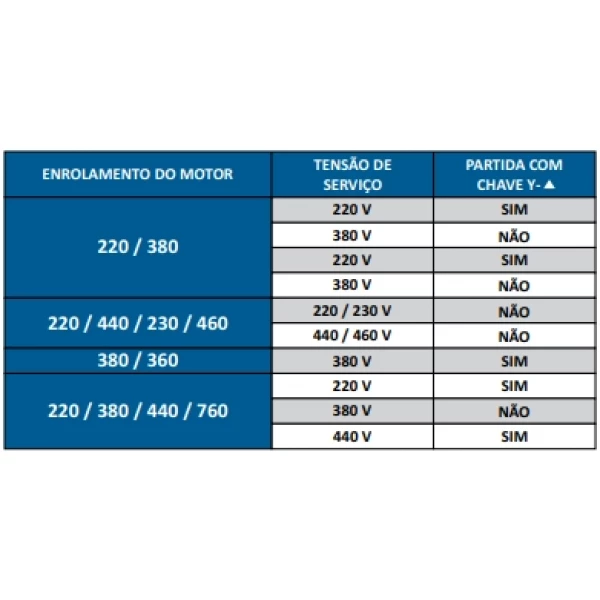 Este tipo de chave é utilizada para motores cuja tensão nominal em triângulo, coincide com a tensão nominal entre fases da rede alimentadora, portanto um motor 220/380 Y não pode ser ligado com chave estrela triângulo em uma rede de 380 V entre fases. É fundamental para a partida que o motor tenha a possibilidade de ligação em dupla tensão, ou seja, em 220/380V, em 380/660V ou 440/760V. Os motores deverão ter no mínimo seis bornes de ligação. Na ligação estrela, a corrente fica reduzida para 25 a 33% da corrente de partida na ligação triângulo. O conjugado resistente da carga, não poderá ultrapassar o conjugado de partida do motor, nem a corrente no instante da mudança para triângulo poderá ser de valor inaceitável. Existem casos em que este sistema de partida não pode ser usado.